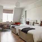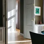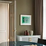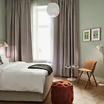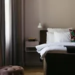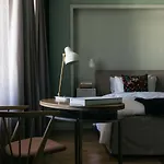 Hotel St. George Helsinki provides accommodation designed to instill a sense of peace and luxury. The rooms feature a delicate color palette of olive and brown, accented with rich, dark furnishings. The interior design, inspired by both Scandinavian and mainland European artistic styles, features DUX Comfort mattresses, high-quality down duvets, and private balconies overlooking the Old Church Park. These elements ensure a perfect night's sleep and an elegant atmosphere where guests can enjoy Helsinki's stunning sunsets and sunrises.